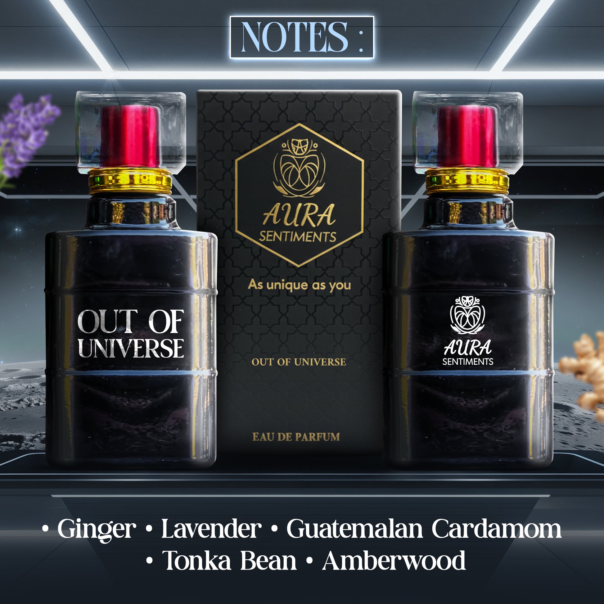 OUT OF UNIVERSE scent is designed to be modern and versatile, described as masculine, confident, and alluring, suitable for both daytime and special occasions.